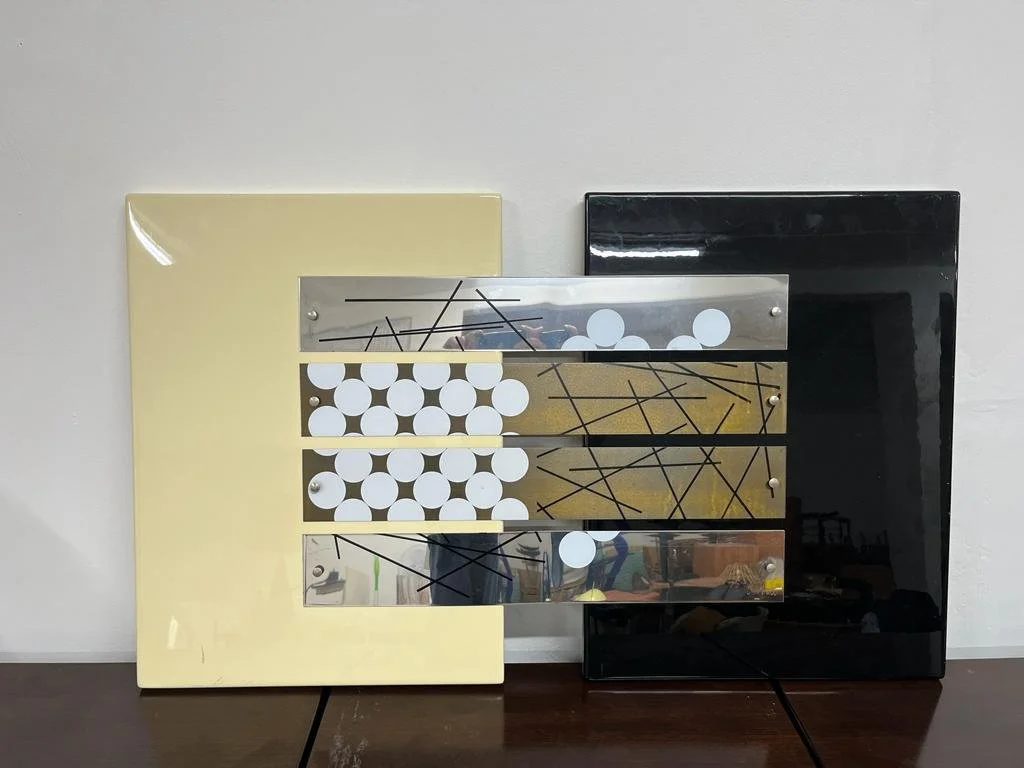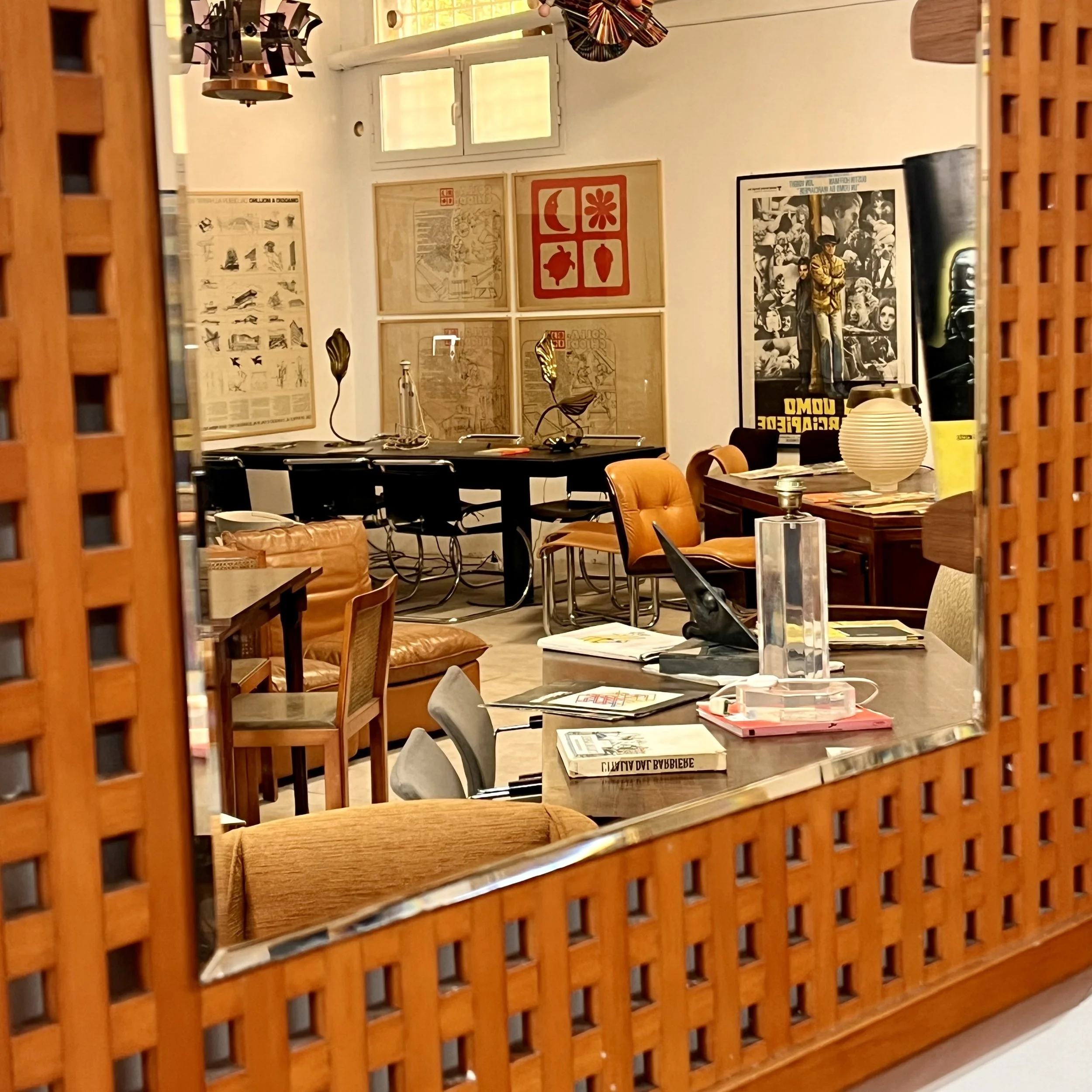 COMPLEMENTI Tavolino da caffè di Fontana Arte Specchio con cornice a scacchiera in noce Tavolino con disegno a scacchiera Specchio di Fontana Arte Secchiello per il ghiaccio di Cleto Munari per Benaglia Milano Specchio da parete. Gio Ponti, Prod. Dassi Bar con ruote di Joe Colombo Specchio di Bianca Garinei per Banci Bar da viaggio Appendiabiti con parti a specchio e cappelliera in vetro Grande specchio da parete Grande pannello scultoreo in metallo di Angelo Casati Scultura murale con matite colorate temperate Ceramiche blu di Aldo Londi per Bitossi Portariviste Fontana Arte Coppia di vasi in ceramica smaltata Portacarte, cestino e macchina da scrivere di Ettore Sottsass per Olivetti Tavolini impilabili di Afra e Tobia Scarpa per Cassina Carrello portavivande '762' di Salvati e Tresoldi per Cassina Orologio 'T1' di Mangiarotti e Morassutti per Secticon Quadro decorativo a specchio di Otello Ciullini per Studio EF Puzzle '16' animali di Enzo Mari Specchio di Lorenzo Burchiellaro Portaombrelli smaltato Valdelsa
