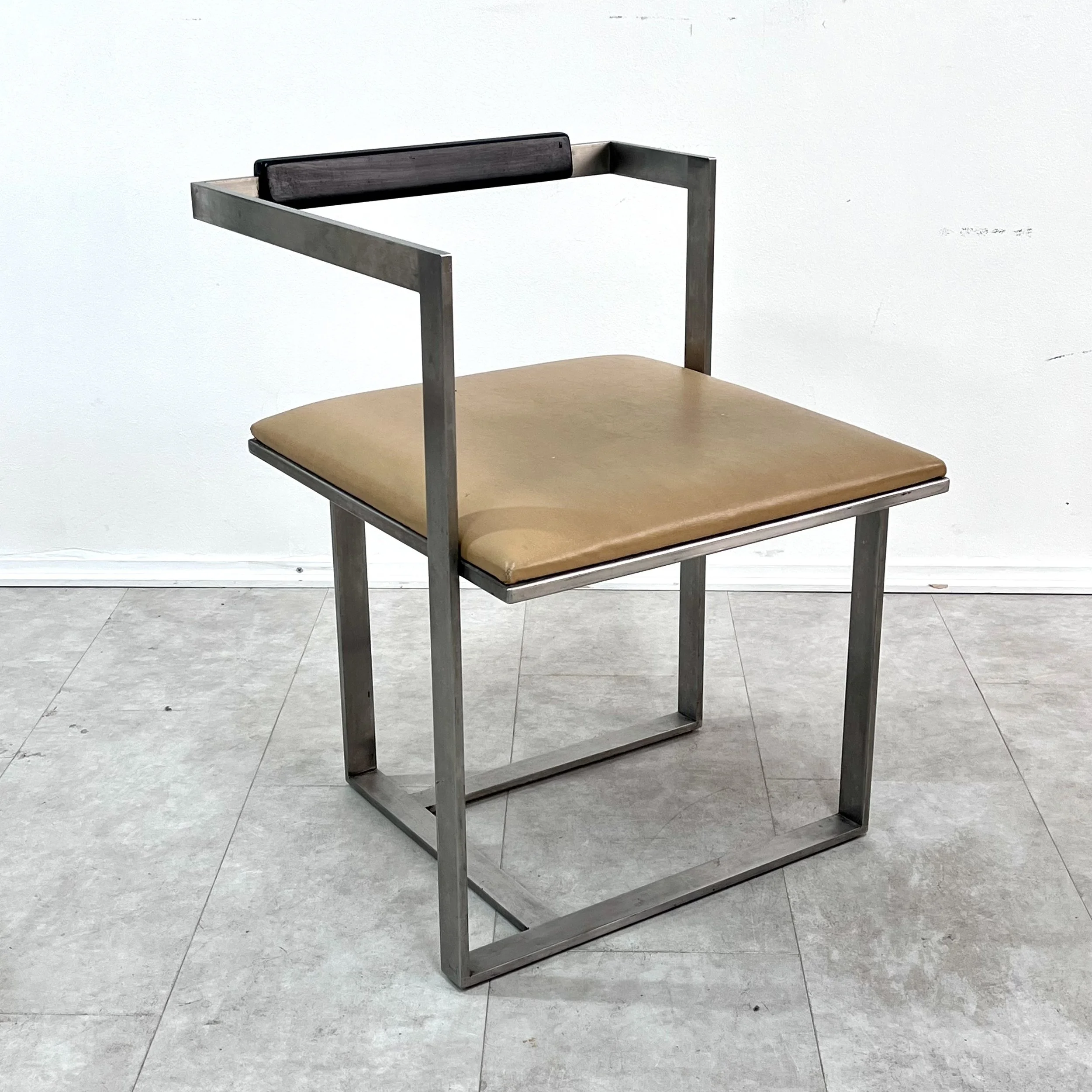 Le sedie presentano un design essenziale e geometrico, caratterizzato da linee rette e volumi squadrati. La struttura in acciaio è composta da elementi tubolari saldati tra loro a formare una sorta di cubo, all'interno del quale è posizionata la seduta e lo schienale. Il materiale predominante è l'acciaio, che conferisce alla sedia un aspetto robusto e industriale. Nonostante l'aspetto rigoroso, queste sedie offrono un ottimo comfort discreto. Grazie al loro design essenziale e alla loro robustezza, queste sedie sono molto versatili e possono essere utilizzate in diversi contesti, sia domestici che contract. Lo stile è inconfondibilmente industriale, con un richiamo al design minimalista e razionale degli anni '80.